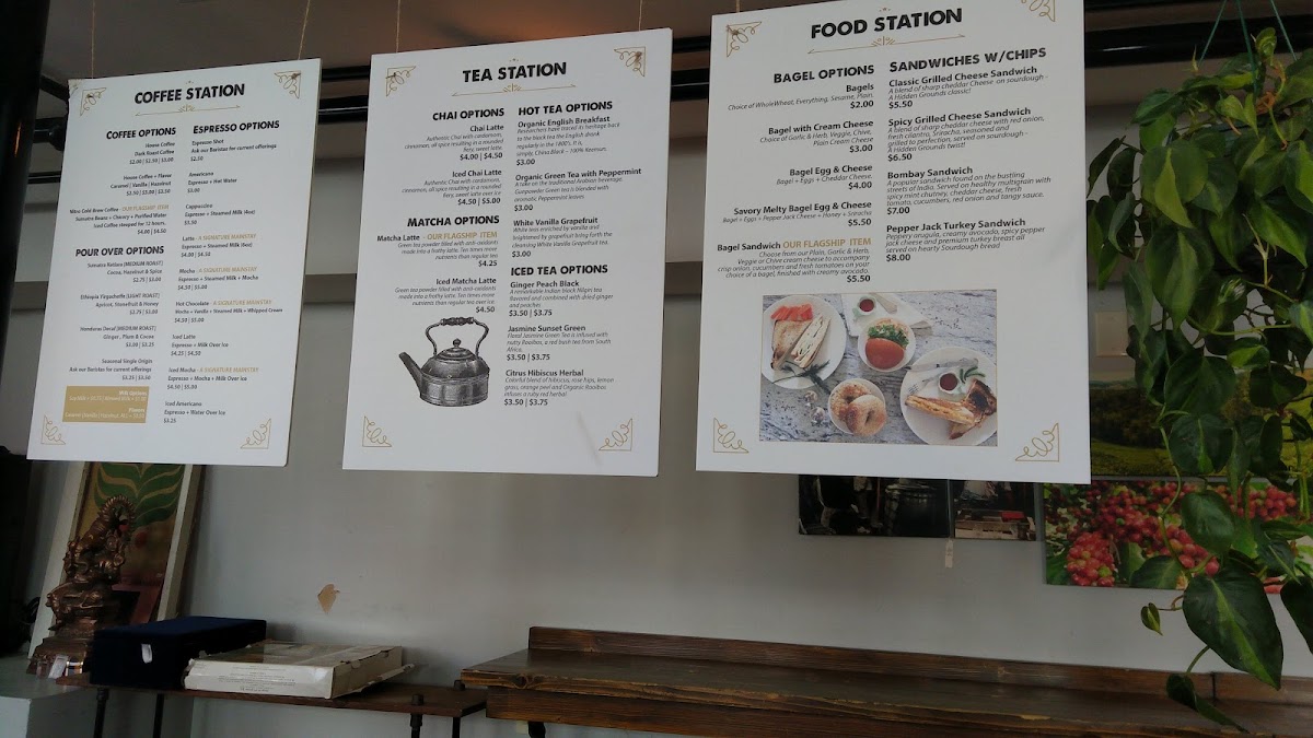 “ I came here with my daughter because she's been wanting to try it. She had the lavender honey latte, and she liked it because it was sweet. I drank the iced chai latte, and it was very good. I ate the Bombay sandwich which was very delicious. The mint and date chutney definitely had a little kick to it, but all of the flavors worked well together. My daughter ate the smoked salmon toast, which she really enjoyed. The red pepper flakes definitely added a kick to it, but she liked how that paired with the scallion cream cheese she requested. Seating is tight, and there are several students spread out on their computers. Luckily, a table opened up for us. We would definitely come back here again. ”